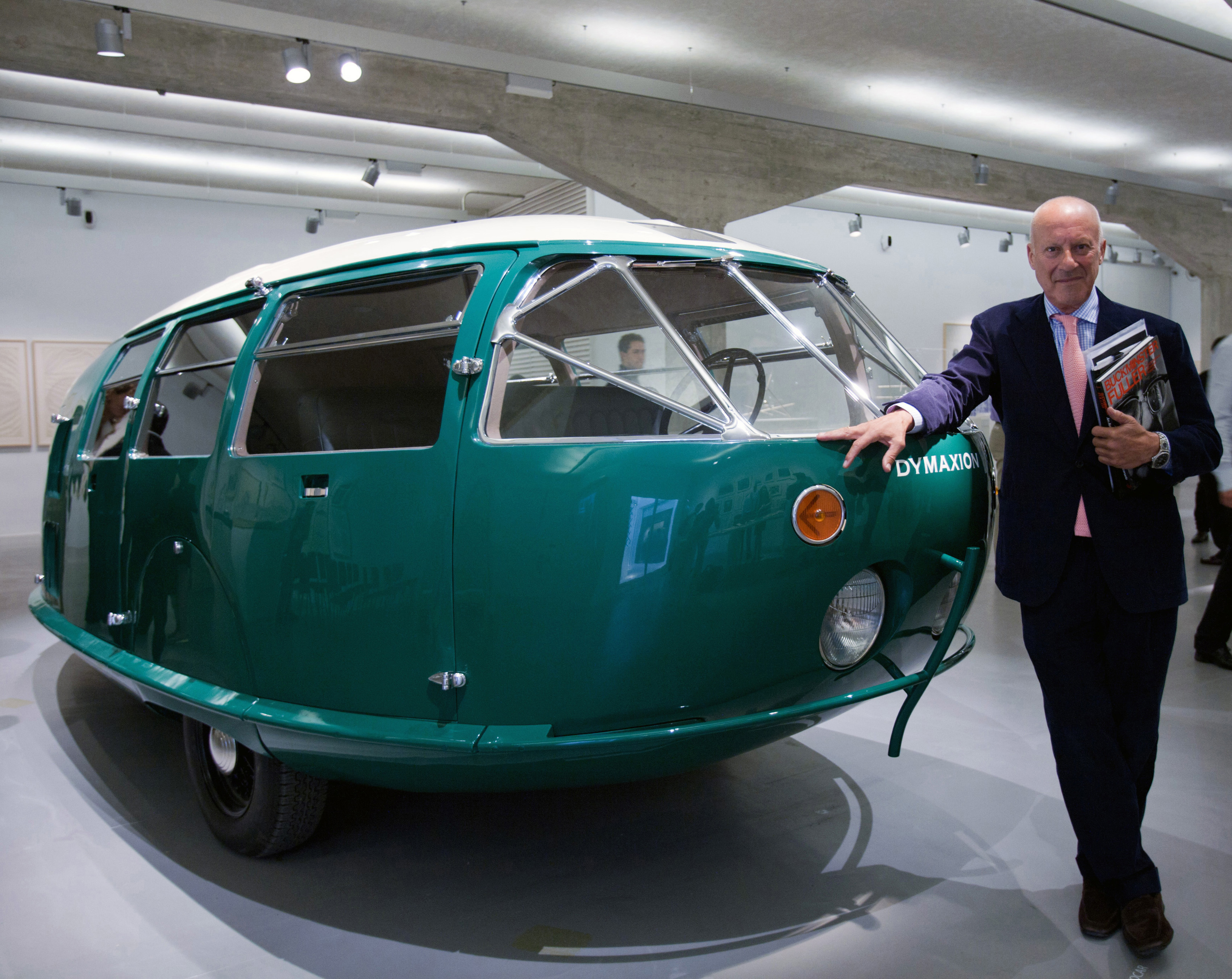 (El arquitecto británico posando el jueves pasado junto a su Dymaxion Car Nº 4, en IvoryBooks+Art, Madrid. Foto: Sebastián Marjanov)